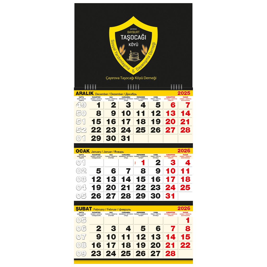 07 Gemici Takvim Büyük Boy / Tek Parça Spiralli